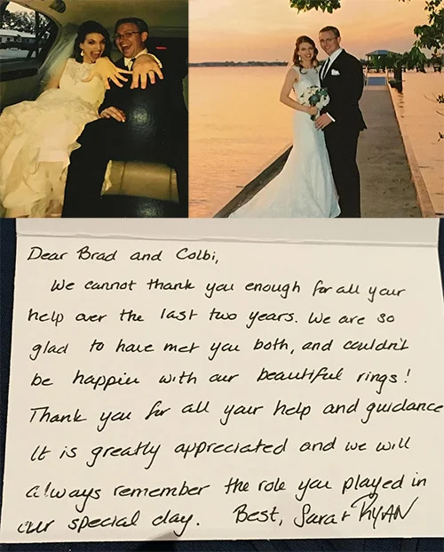 “We cannot thank you enough for all your help over the last two years. We are so glad to have met you both, and couldn’t be happier with our beautiful rings! Thank you for all your help and guidance, it is greatly appreciated and we will always remember the role you played in our special day.”